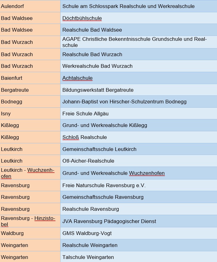 - Schulart Realschule / Werkrealschule / Gemeinschaftsschule